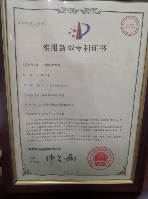 本实用新型涉及电子测试领域,特别涉及一种测试针装置。该测试针装置包括插针、顶针、大电流接触母套、测试弹簧,所述插针与大电流接触母套连接,所述插针设有弹簧腔,所述大电流接触母套设有接触腔,所述弹簧腔与接触腔相贯通,所述测试弹簧位于弹簧腔内,所述顶针的底部位于弹簧腔内并与测试弹簧连接,所述顶针位于接触腔